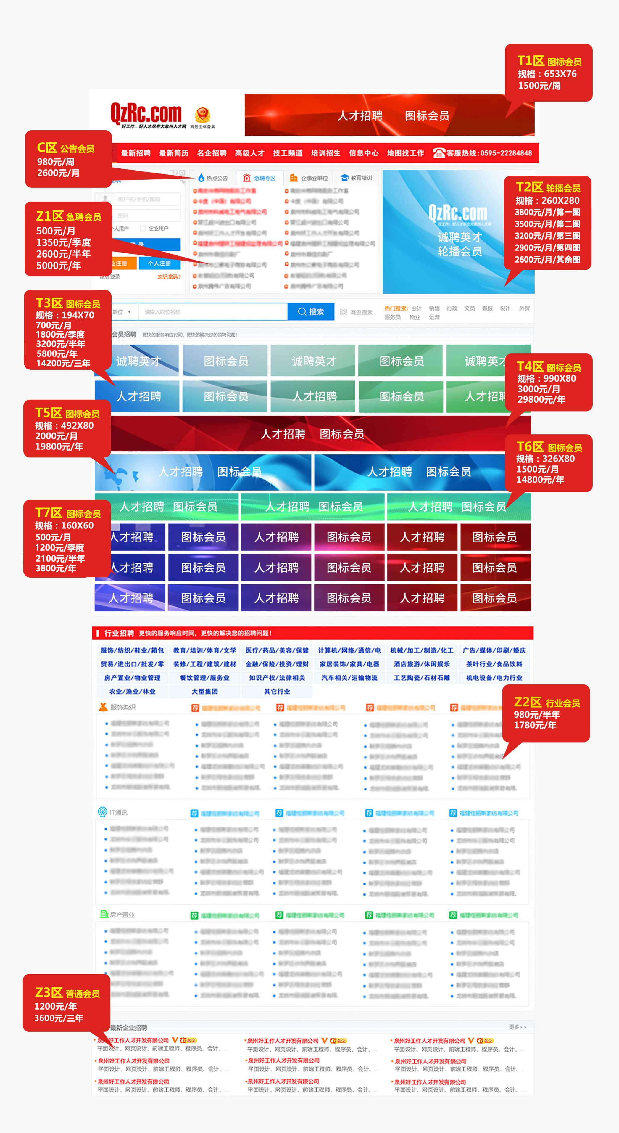 | 案例說明 | 1.企業(yè)A想獲得短時間的大量曝光,可選擇急聘會員+單獨投放首頁T1廣告位+公眾號推送營銷的推廣方案。 2.企業(yè)B有大量招聘需求,又想提升品牌形象,可以選擇行業(yè)會員+單獨購買增加聯(lián)系查看數(shù) 3.企業(yè)C為大型公司,HR部門人數(shù)較多,可以選擇增加pc端登陸數(shù)+單獨首頁T2廣告+行業(yè)會員 以上案例只供組合參考,具體組合方式根據(jù)客戶需求 |